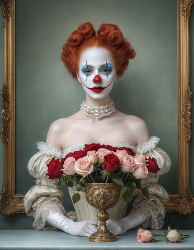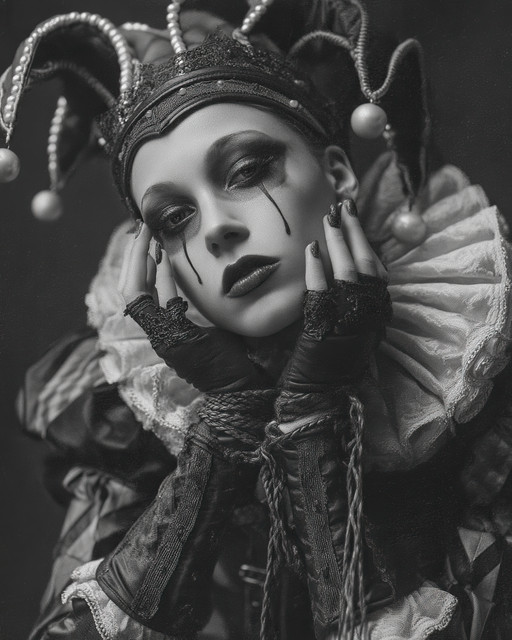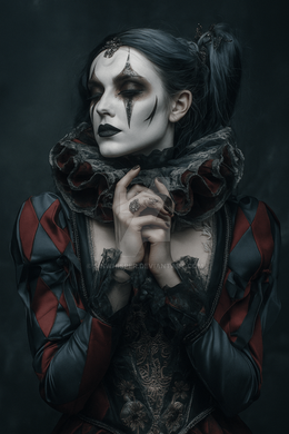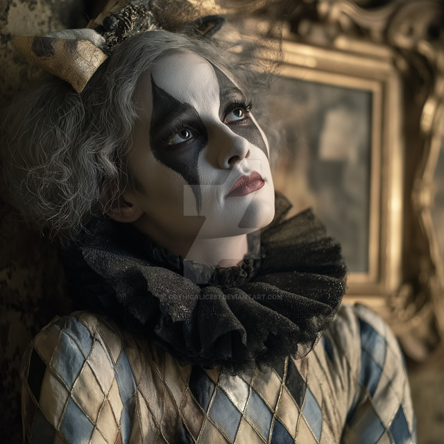 #beauty #digitalart #gothic #portrait #horror #vintage #makeup #aliceinwonderland #photography #ai #clown #harlequin #rococo #rose #spiders #midjourney
