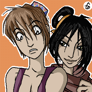 This is one of the cases where the girl got the role mostly for the guy. When I first started thinking about the Jasmine pic, I knew I wanted a character who lived a life of poverty to play Aladdin. That was when it hit me: ZAKU!!Besides, Kin was the only girl who could work Jasmine's hair.