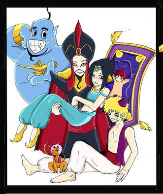 XD awesome choice, Zaku makes a great Aladdin, I was a little sad when he died. And XD I could imagine Sasuke with Robin William's voice in some weird world. I really like this one since Aladdin was my favorite Disney movie ^^