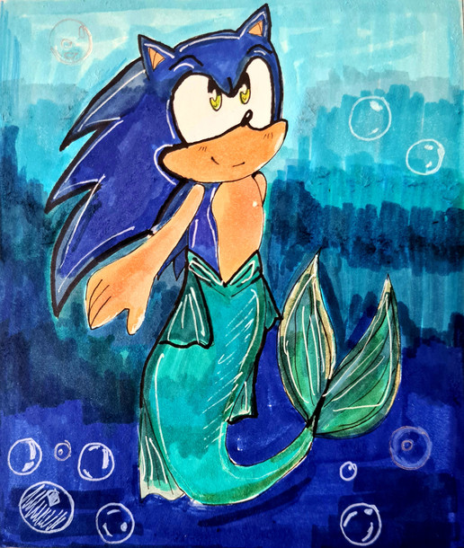 Awwww cool I think sonic as a merhog suits him better