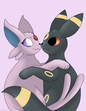 Late birthday gift for one of my friends irl. They asked me if I could draw a Umbreon and Espeon together and I asked them if I can make it gay...They approve.Pokemon belongs to Nintendo