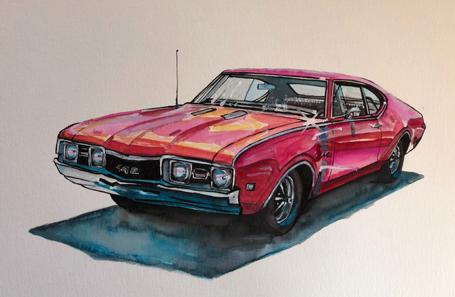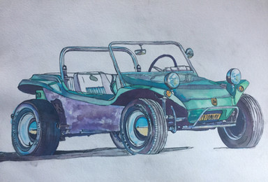 #automobile #blue #car #cheetah #drawing #illustration #orange #racecar #red #watercolor #yellow