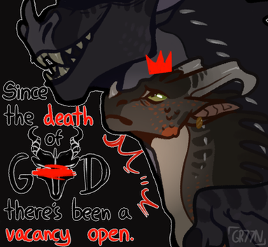HUNGER (Queen Luster) - Queen Luster is a very young Rainwing Queen with vitiligo (likely due to some Nightwing traits she inherited from her family, resulting in some of her scales unable to change color), her being a year or so older than Nighthawk, all of this being due to her parents unexpectedly dying, likely murder. She somewhat struggles with ruling both tribes (Nightwing and Rainwing) due to the sudden appearance of a large group of Nightwing's led by Shadowstalker (surprisingly enough since he served her mother) who are against her ruling and want to disband and have their own Queen although this isn't very possible due to the rest of the Nightwing's residing happily under her rule, feeling no need of having their own Nightwing Queen. If they disbanded it would possibly leave the rest of the Nightwing's vulnerable to other tribes, especially since their group isn't the majority of Nightwings. Overall Nighthawk feels a lot of affection towards the young Queen, wanting her as his partner.