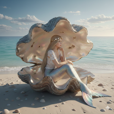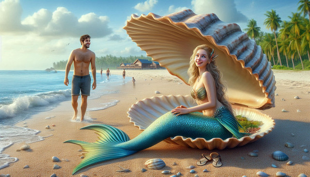 #mermaid #sea #photomanipulation #digitalart #photography #magic #fairytale #clouds #sand #seashell #surreal #water #waves #ai_art