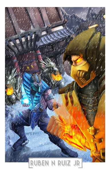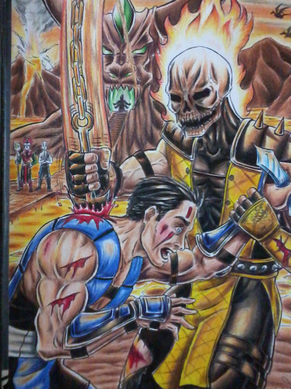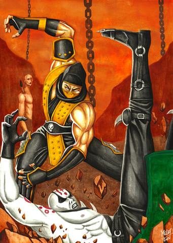 But I'm not here to be a hater. I really like this piece, especially the colors and the interaction. You can really see how mad Scorpion is and how Raiden is confronting him. The colors are great as is the detail in their outfits. You are always so detailed with your MK art. I really think you should be a concept artist for NetherRealm. You'd be so great at it!