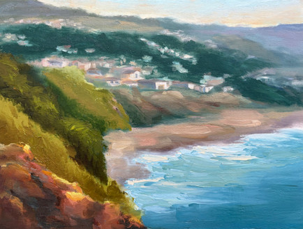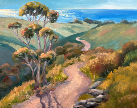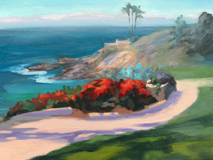 As I neared the conclusion of my stroll along Laguna shores, I encountered an inlet close to the rugged cliff. There, the sun began its descent, its rays gently filtering through the edges and casting shadows upon the rocky pathway that meanders toward the ocean.
