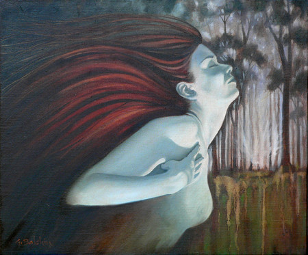 love how you have conveyed the feeling of darkness, almost as if she is bathed in the cool, silver-blue light of the moon.