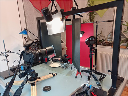 this ugly beast is the second prototype of my macro flash tubean extendable, adjustable all-mirrored cardboard construction guiding the light from the hotshoed flash close to the target through a diffuser