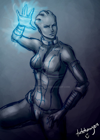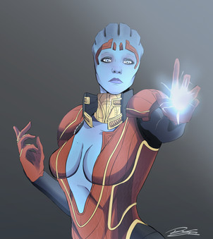 Everybody's favorite asari Justicar. I friggin' love her eyes!Just a quick sketch with some coloring done.