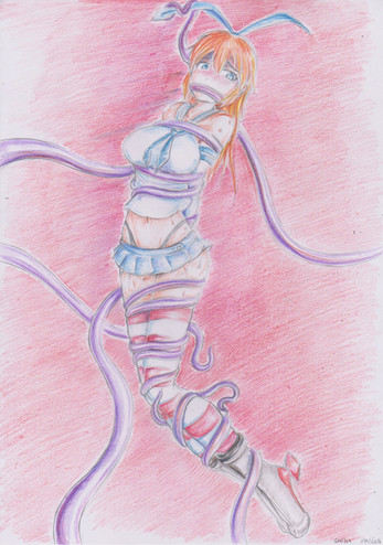 Noo!! * struggles .* l-let goo!! *blushing * heeellp!!! * shots fire at it *