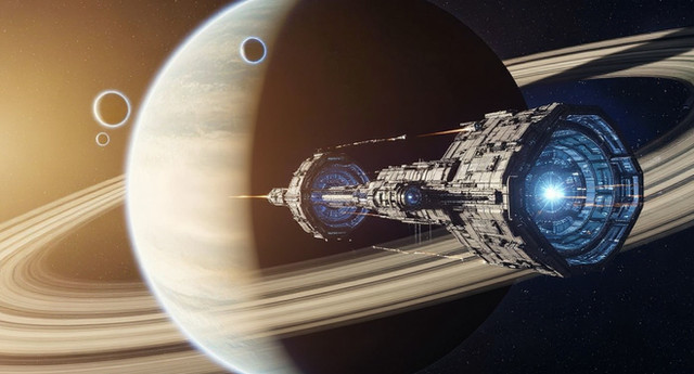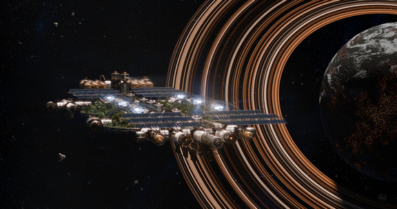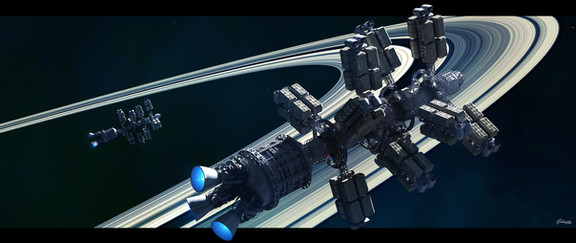 Makes me think of the Homeworld game series with its boxy industrial look. But I suppose the 70s scifi if where that series draws its inspiration from.