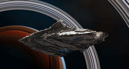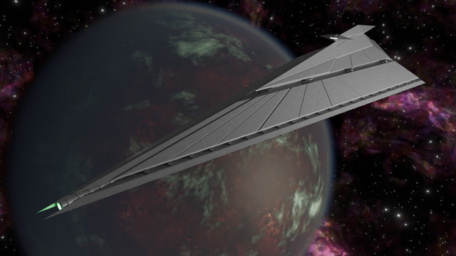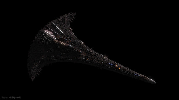 Neat, and she's lovely, almost like a harmony of a Super Star Destroyer and Home One - the slim arrowhead mated with flowing curves.