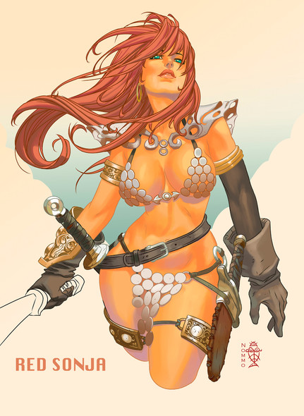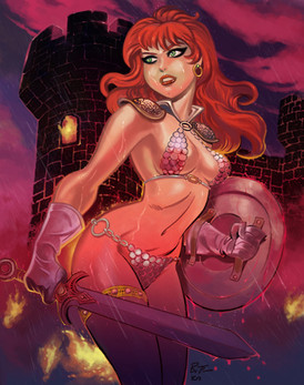 She has such a great, dynamic pose here! The way her back is arched definitely brings to mind the body of a cheetah. I love how the the background has kind of muted, soft colours, whereas her outfit is more of a bright redΒ β it really reinforces the bold feel, I think.Β