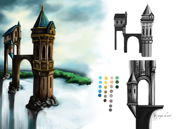 #cliff #cliffs #forest #fort #fortress #landscape #mountain #mountains #pineforest #waterfall #worldbuilding #environmentdesign #fortifiedchurch #fortifiedmonastery #conceptart #fantasyart #fantasyillustration