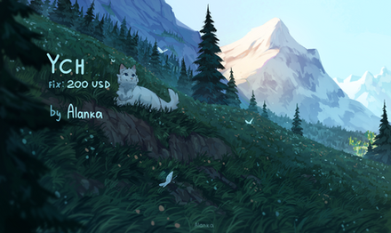 #blue #cat #clouds #feline #flowers #grass #green #morning #snow #landscapescenery #mountains #openych