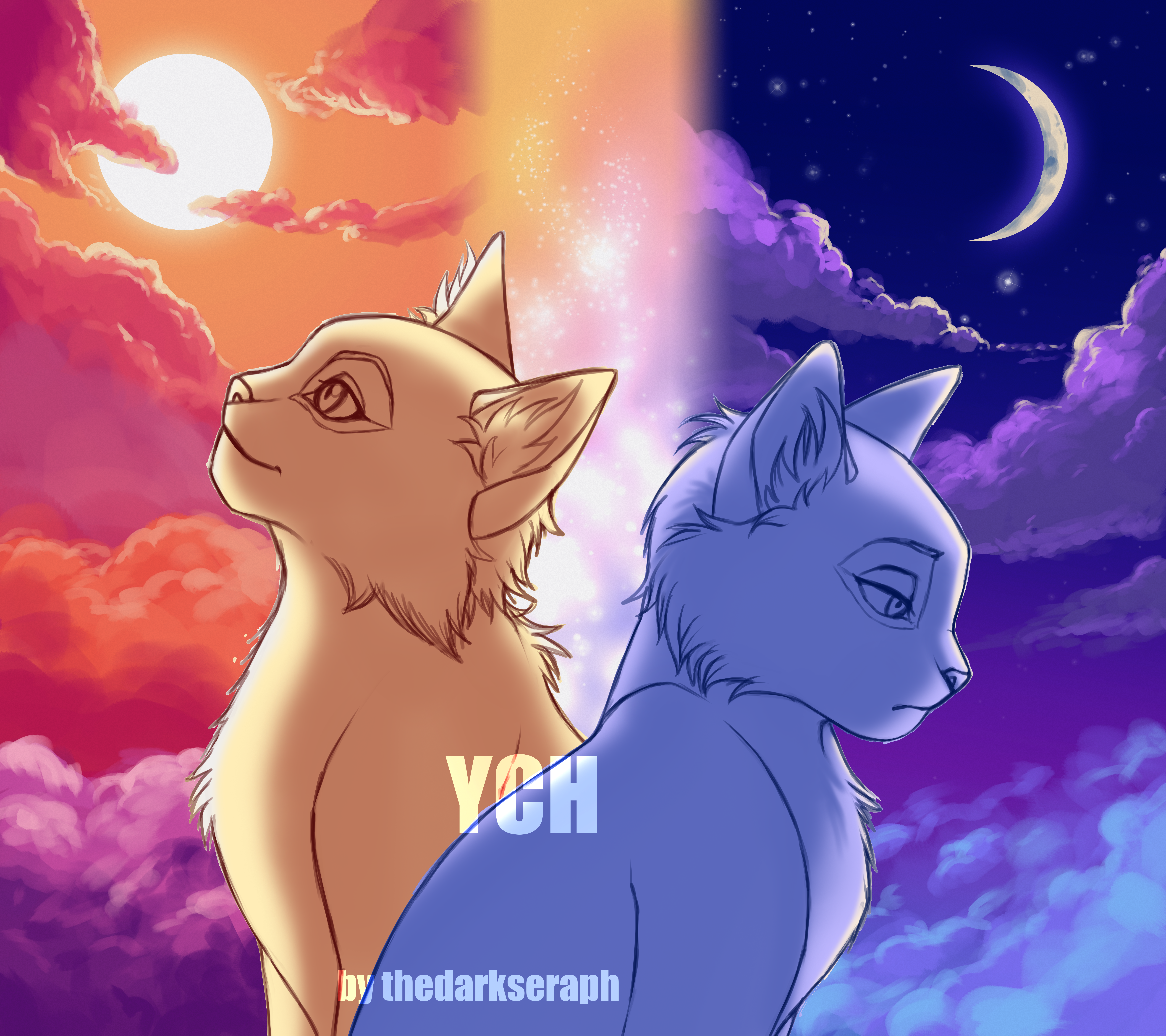 #blue #cats #clouds #field #moon #pink #sketch #skyscape #sunrise #coupleych #digitalpainting #landscapescenery #scenery