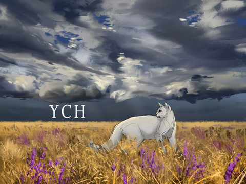 #cat #clouds #feline #storm #atmospheric #contrast #digitalpainting #field #illustrationdigital #scenerylandscape