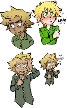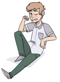 I really like the way you color your lines-- you can tell that the arms, shoes, and hair are not quite outlined in black, but they're similar enough that they look like one solid outline and don't distract from the filled-in colors. That's cool! What tools do you use to do that? I can't ever seem to get colored outlines right in GIMP.Β