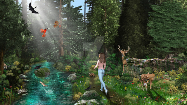 #animals #clearing #deer #eagle #forest #light #nature #stream #water #wilderness