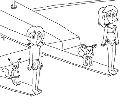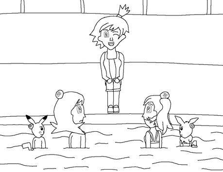At the end of the pool, there was Misty. She came up to the trainers."Well if it isn't the Champion and her partner! I see you've brought Chase and Pikachu along too!" She greeted out. "The changing room's over there. I like to see how well you do in the board."