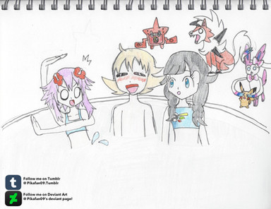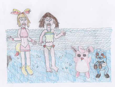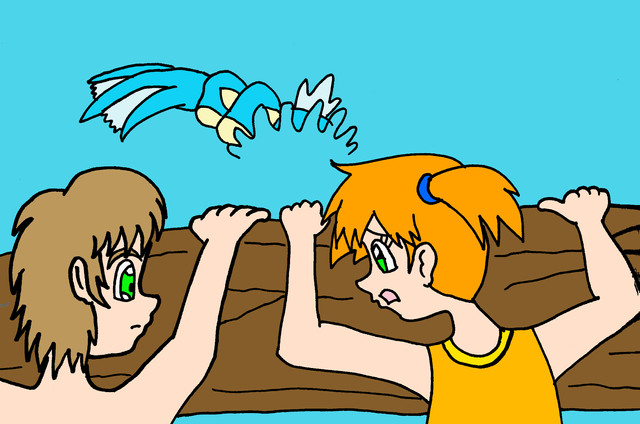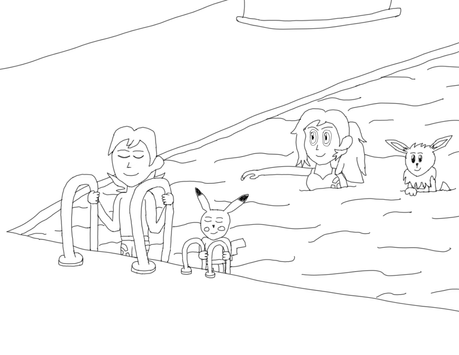 Ker-Splash!Underwater in the pool, Elaine and Eevee felt the water rushing through their bodies. While Chase and Pikachu felt the bubbles from the splash! The water of the pool felt cool, feeling what makes the Cerulean gym a water gym.