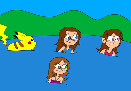 #bathingsuits #board #cerulean #chase #diving #divingboard #eevee #elaine #flying #go #lets #letsgo #pikachu #pokemon #swimsuits #swimwear #pokemonletsgo #ceruleanflying