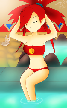 #bikini #board #dive #diving #divingboard #flannery #hot #hotspring #hotsprings #oras #pokemon #slugma #spring #springs #steam #swimsuit #armstand #poolfloat #flannerypokemon