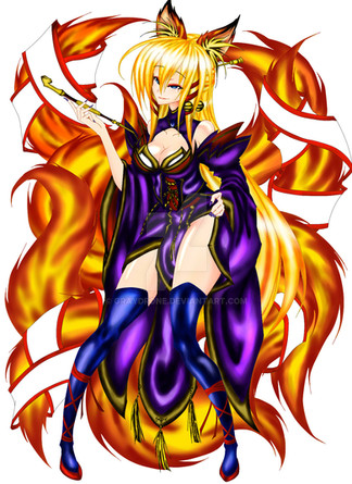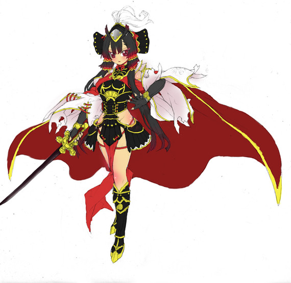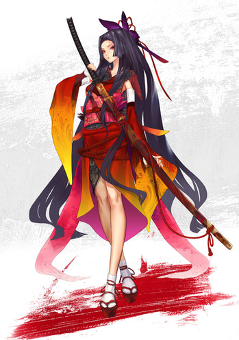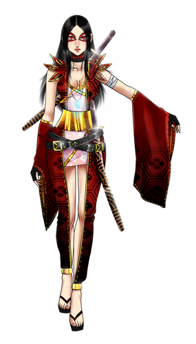#redkimono #lilypin #monstergirl #onigirl #redhaired #monstergirls #samuraiarmor #hannyamask #redoni #winegourd #shinemewa