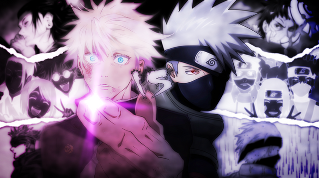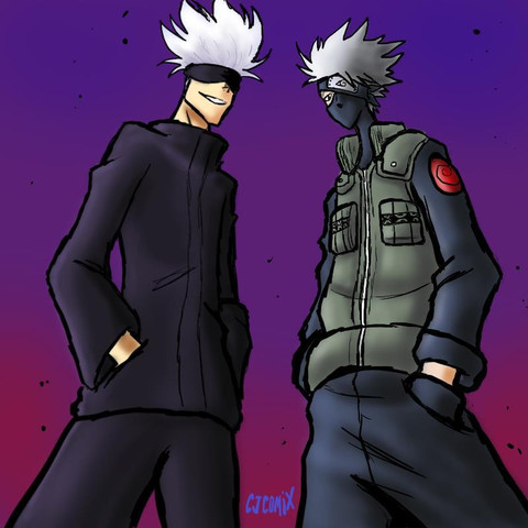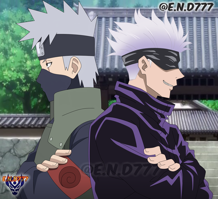 The cool white-haired teacher with a mask crossover that we all want but will never getAnime/Manga: Naruto x Jujutsu Kaisen