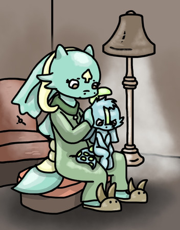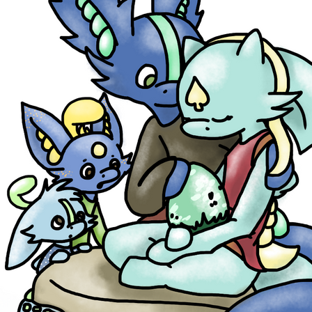 "Hi there..." Ripple whispered as softly as she could, tears welling in her eyes. "You did it little buddy," she said. She picked up a broken shell piece off his forehead and gently pulled it away, the liquid-like membrane still attached.