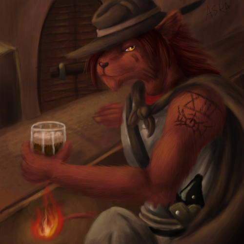 Man...it's all about atmosphere, and this is brimming with it. The dimmed lights, the soften, somber shades that sift with smoke...it's like a scent of Casablanca...but in colour, and with fur The character has a very mysterious allure to her, and as usual the whole thing is a really complete scene, not just a character portrait. It's got class. And that's why we love this stuff. Keep it up!