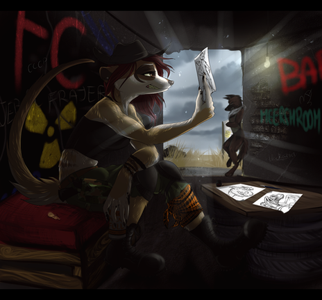 This is pretty nice with it's atmosphere and colors. Also a theme I haven't seen so often with anthro characters.