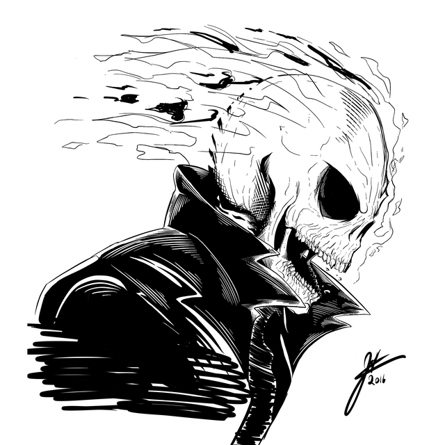 Ghost Rider. It started out as a simple skull structure exercise and morphed into the Spirit of Vengeance. I really enjoyed how they used him on the Β Agents of Shield show.Related content