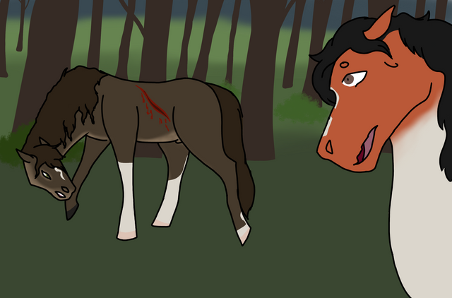 Sequoia wasn’t always the chaotic stallion he is today, when he was still young he was in a herd that raised him and taught him. His healing knowledge came in handy when he happened across a dazed and injured mare.