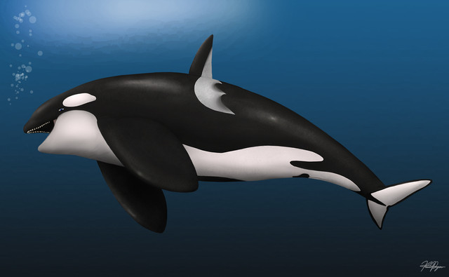 Indeed. Male orcas have a particular profile, that looks almost too out of proportion to be real or too bulky for them to gain swimming speed. But still they manage.