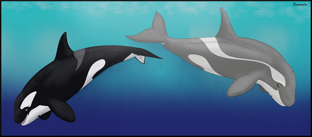 A point commission of 's OC Blade (a younger pass than is seen in his ref sheet) with a dugong. Per her request.The two-tone background was done with keeping a shallow, south Pacific coral habitat in mind. And the shading/lighting on both characters was a blend of cell shading and freehand, even more of a blend than I typically use in my other works.