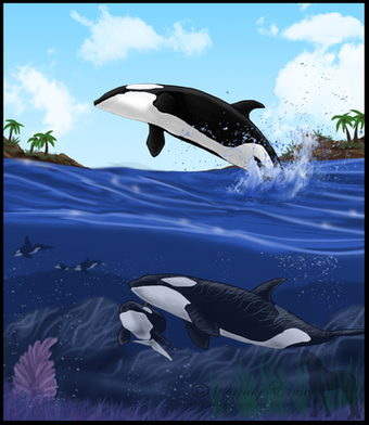 Cool story! Where'd the little dude come from? Is he hers? Who are these new orcas? I'm really interested now, and hope you do more with this story. The image is lovely, too. The characters are beautiful and I love how you painted the light and shadows. I'm especially impressed with that boat hull! Boats are difficult to draw, and you did such an amazing job on the little details even adding propellers!Β