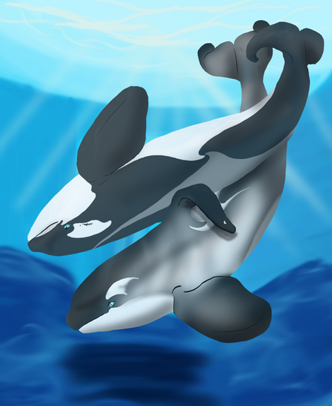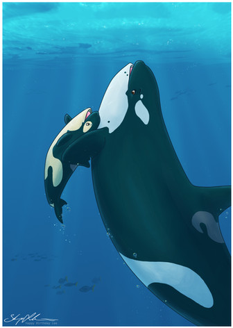 It's always wonderful to see Gunnar art, let alone back story art. The colours are gorgeous, almost mysterious. The orcas look wonderful underwater, you really mastered the the contrast of in/out of water. Poses are fantastic as always.