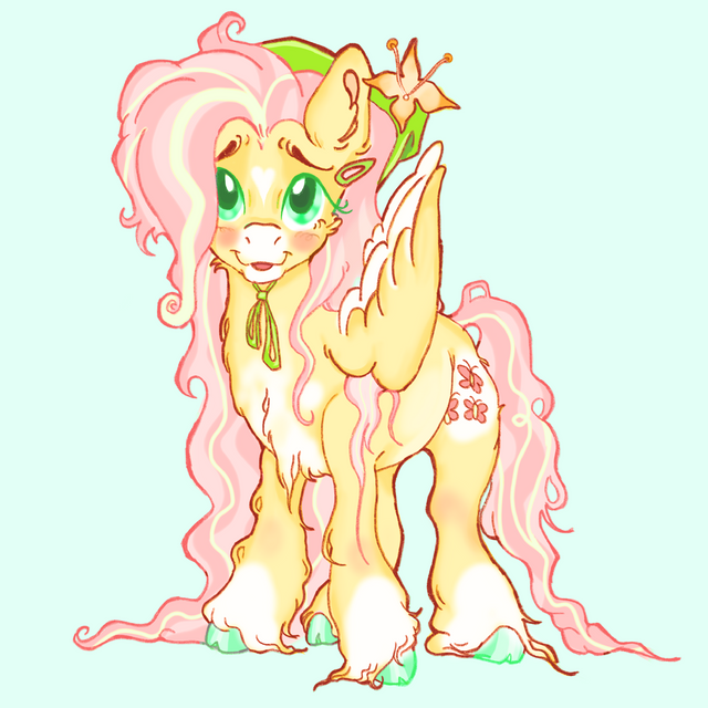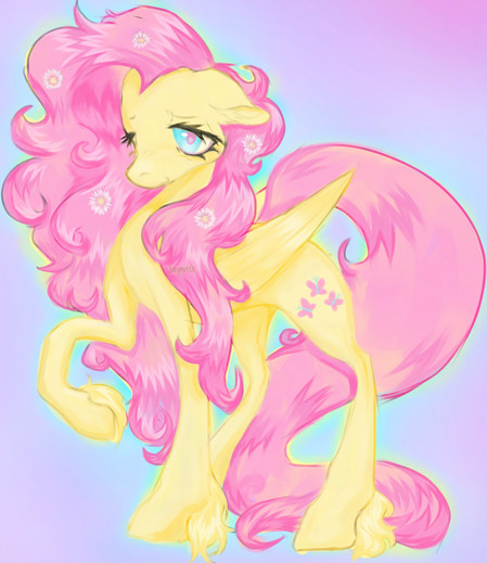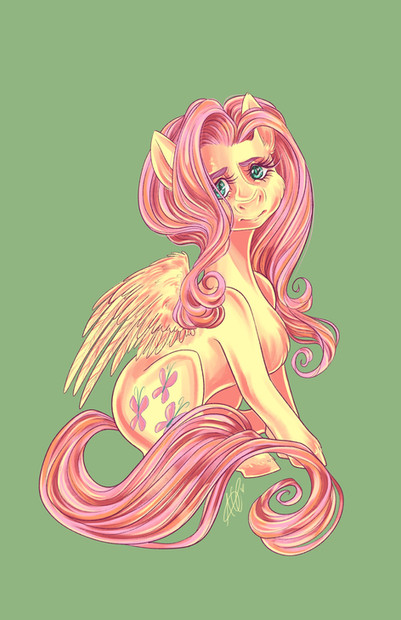 I can totally see Fluttershy doing her hair like that. Dreads would probably make it easier for birds to roost there. Lovely colors. I dig your style.