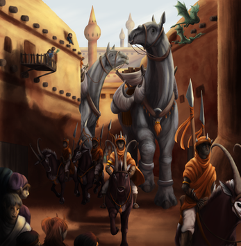 After days of wandering the sandy wastes, the old merchant and his daughter finally stumble upon some civilization. Another town, another market... At least the Tolvader will have time to rest.My buddy let me design my own of her closed species, Tolvaders