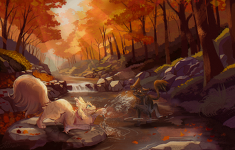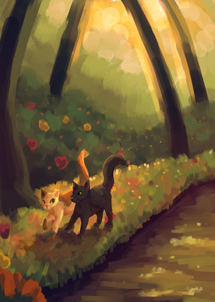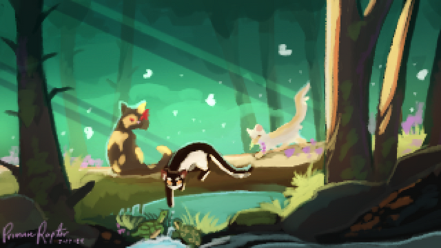 #blackfoot #cat #digitalillustration #erinhunter #fanart #flametail #illustration #painting #scene #swamp #warriors #warriorcats #warriorsfanart #lionblaze #toadleap #warriorcatsart