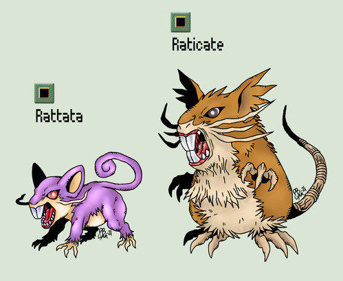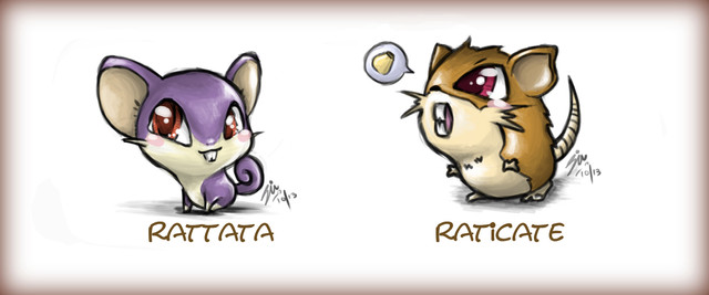 Rattata and Raticate for my pokemon challenge (archive here: [link] )not my favorite pokemonz but they just came out adorably x3 they look so fluffy and cute! And as an unrealted ote, i never understood why a purple mouse turned into a orange-brown rat... not the most important observation but it alwayse bugged me... anyways