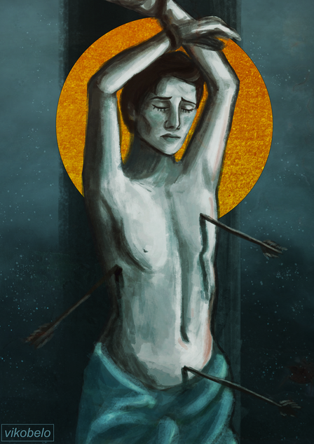 Nice use of the stock and brushes. Although, I seriously doubt Saint Sebastian would've look so mellow after being shot at, it looks great.