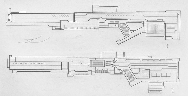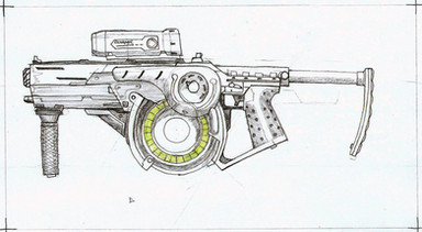Holy crap The Jackhammer DOES look like my IX4! Uncanny...especially since it was totally a coincidence. I really don't know what my influences were, but that's just amazing, the Pancor Jackhammer even has the bullpup drum mag on it, as well as the big rail on top! If they ever make a movie based on my fictional universe then they could modify Pancor Jackhmmers to be IX4s, sorta like how Star Wars blasters were made from Brens, and the M41A pulse rifle from Aliens was made from a Thompson submachine gun.