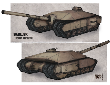 EDIT 11.27.2023: See the finished version hereA turtle-shaped mech/tank, will canonize into Starlight later. It is a privately-built arsenal platform in use by numerous factions in the late-22nd century. Army green paintjob on ones produced by USG factories on Gyron, other units use completely different paint schemes.
