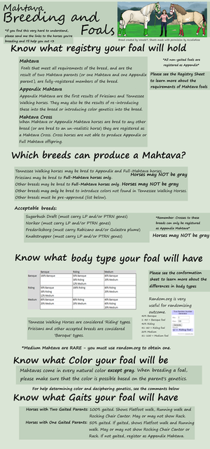 Brilliant! Really effective and clever, plus I love the detail you go into and the randomness it gives for all the possibilities of colour and so fourth. Will definately be trying this for my first foal when I create a HARPG! <3 Love it