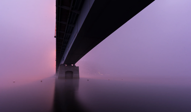 I love this image. It is almost like an illusion. It looks like a pyramid almost, and a dock out over the water at the same time.....This is a great photo