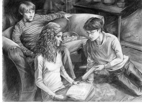 fantastic pencil work. your composition is spot on too. love the little detail of hermione's shoes.