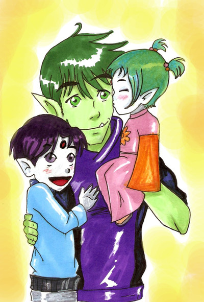 Beast Boy with his daughterI'm still not sure how to name her....Lilith or Aeryn....