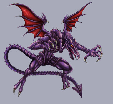 Remember those sketches I did way back when that I promised I would finish in color? Well here they are, finally, completed in time for Metroid's 25th Anniversary!Here's Ridley.